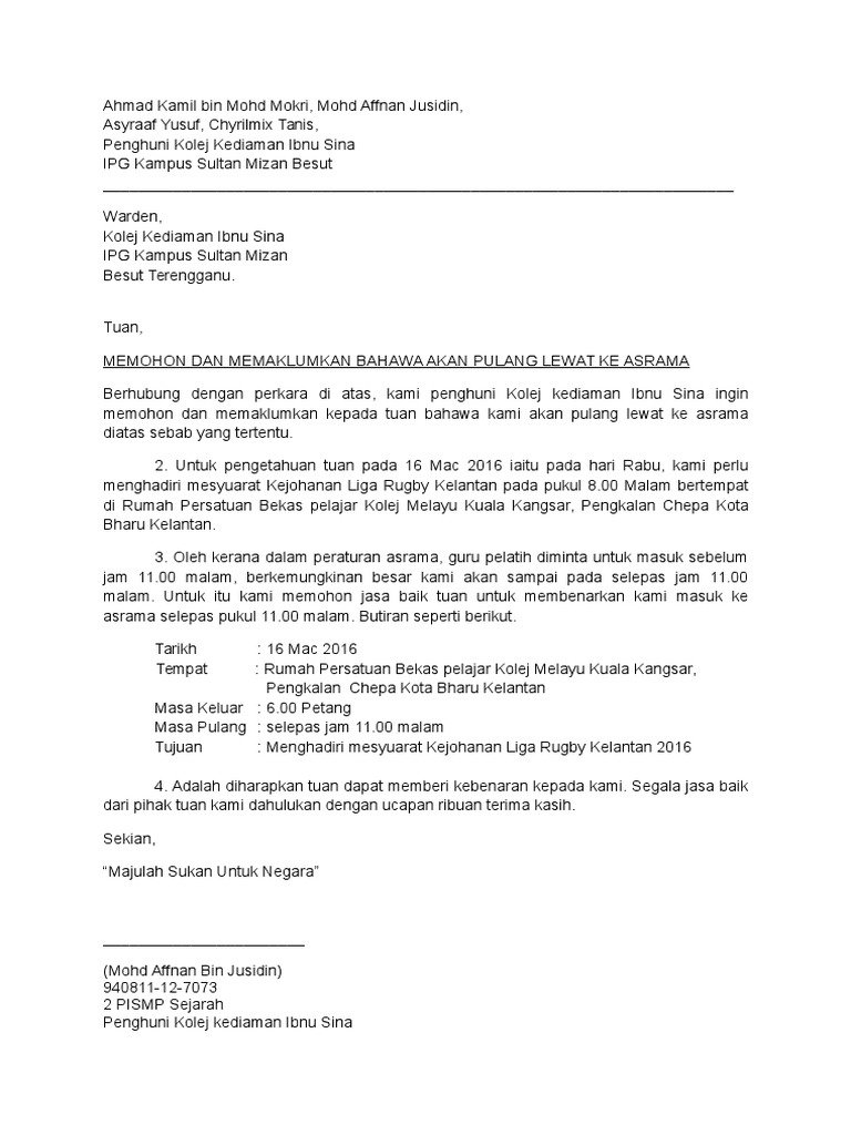 Surat Lewat Balik Asrama Pdf pt.scribd.com
